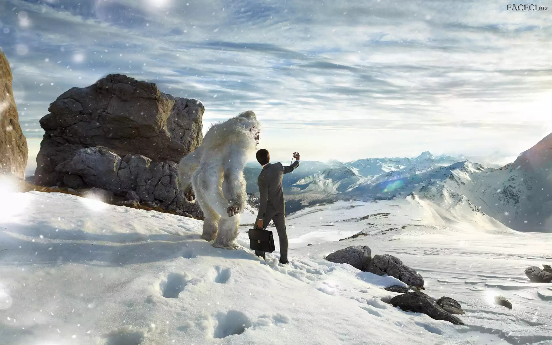Fantasy, Śnieg, Zima, Yeti, Mężczyzna, Góry, Ślady - faceci.biz